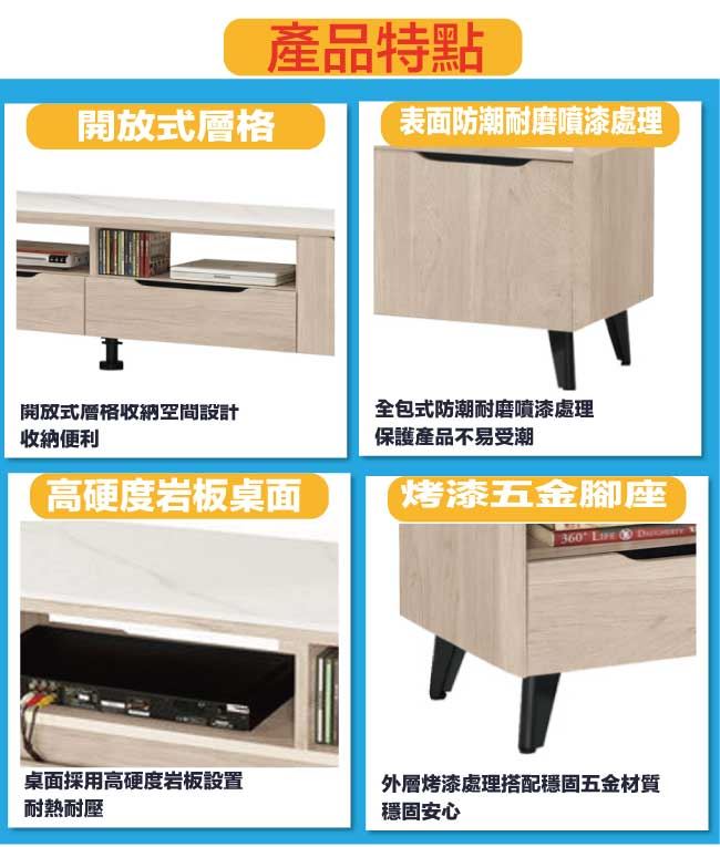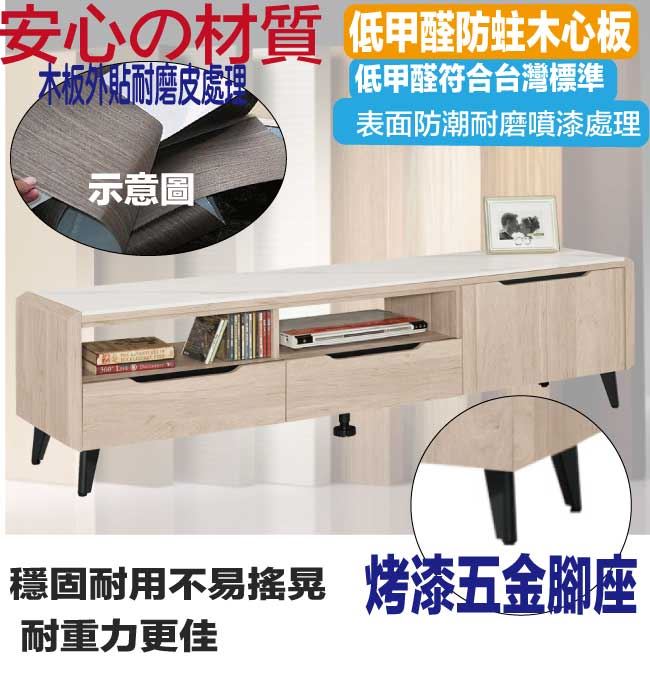 商 品 介 紹 | 【綠家居】維斯達6尺岩板開門二抽電視櫃 橡木紋色系+現代簡約風格+安心材質製造,整體採用防蛀木心板+烤漆金屬腳座+防夾手緩衝門片五金+五金滑軌結構+12mm高硬度岩板桌面板等安心材質製造,產品外層採用防潮耐磨噴漆處理搭配採用開門櫃+二抽屜+開放層格等空間設計,全由專人配送到家,專業安心服務,替你省下更多時間! 【商品特色】 橡木紋色系+現代簡約風格+安心材質製造,使用放心+搭配居家更便利 採用防蛀木心板+烤漆金屬腳座+防夾手緩衝門片五金+五金滑軌結構+12mm高硬度岩板桌面板等安心材質製造 產品外層採用防潮耐磨噴漆處理 搭配採用開門櫃+二抽屜+開放層格等空間設計 此商品不需要DIY組立,此商品為組立後之成品 全由專人配送到家,專業安心服務,替您省下更多時間