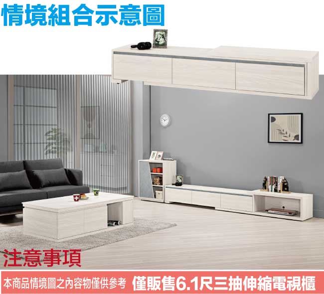 【綠家居】安迪爾6.1尺伸縮機能三抽電視櫃