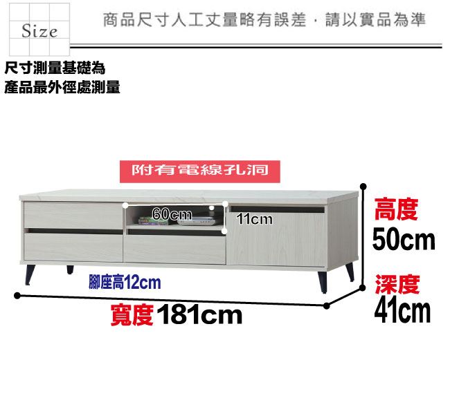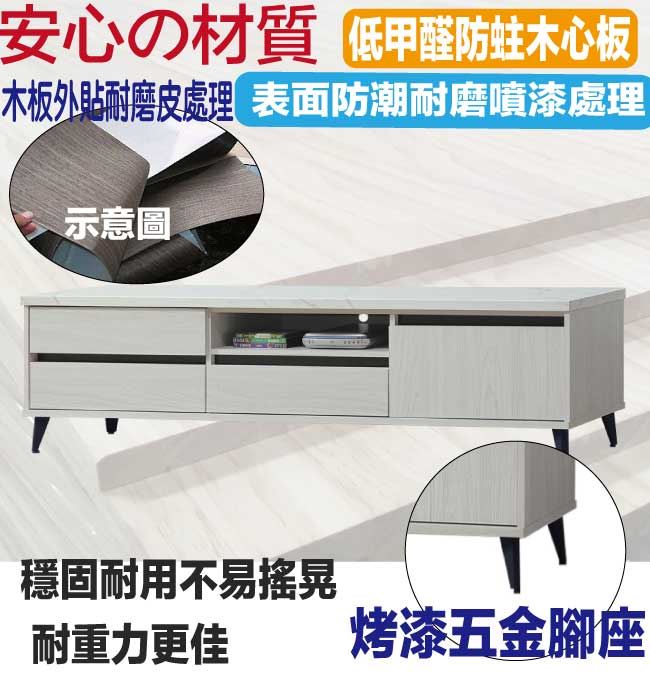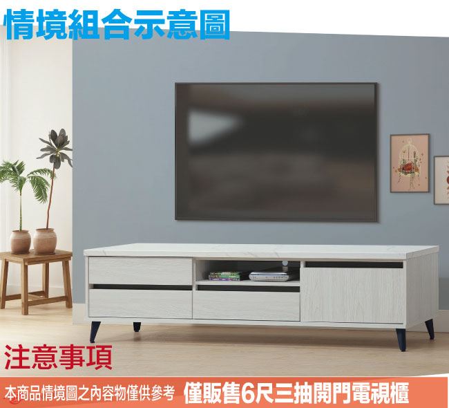 材質 | ◆產品名稱:【綠家居】賽琳6尺單門三抽電視櫃 尺寸:(寬)181x(深)41x(高)50/公分 ◆材質: 材質:防蛀木心板+烤漆金屬腳座+五金滑軌結構+防夾手緩衝門片五金 表面防潮耐磨噴漆處理 |