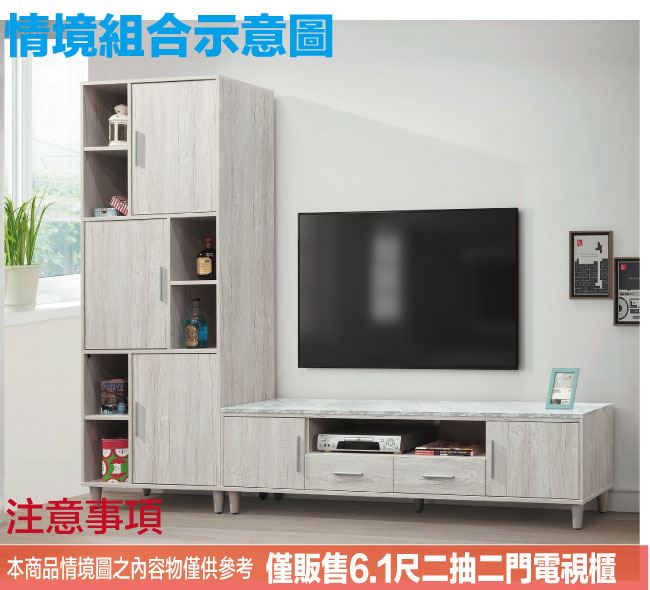 【綠家居】艾可琳6.1尺二門二抽電視櫃