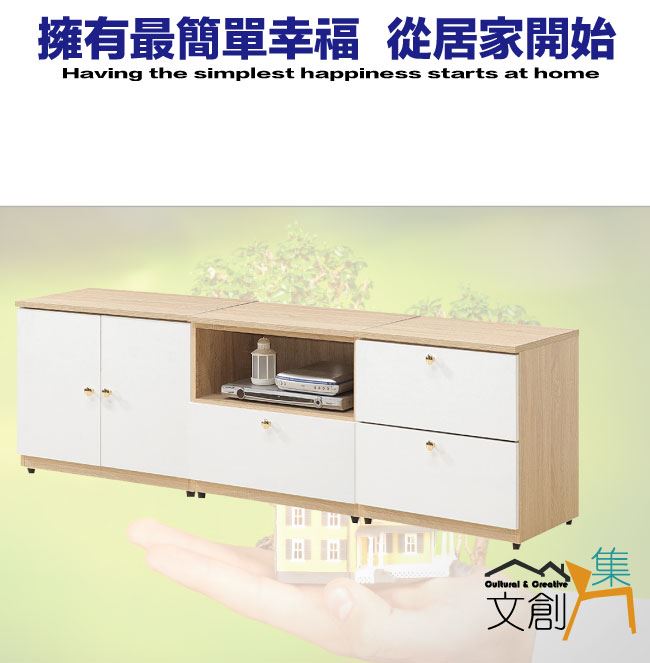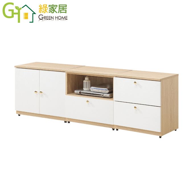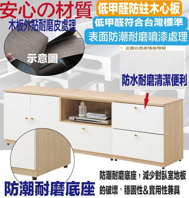 商 品 介 紹 | 【綠家居】杜賓利6尺二門三抽電視櫃組合(電視櫃可自行排列收納組合) 木紋雙色系+現代簡約風格+安心材質製造,使用放心+搭配居家更便利,整體採用防蛀木心板+正面白色面板部份採用採用皮革紋路處理防水耐磨+五金滑軌結構+防潮耐磨腳座+防夾手緩衝門片五金等材質製造搭配外層採用防潮耐磨噴漆處理,採用開門櫃+三抽屜+內&外開放層格等收納空間設計,全由專人配送到家,專業安心服務,替你省下更多時間! 【商品特色】 木紋雙色系+現代簡約風格+安心材質製造,使用放心+搭配居家更便利 防蛀木心板+正面白色面板部份採用採用皮革紋路處理採用皮革紋路處理防水耐磨+五金滑軌結構+防潮耐磨腳座+防夾手緩衝門片五金等材質製造 採用開門櫃+三抽屜+內&外開放層格等收納空間設計 此商品不需要DIY組立,此商品為組立後之成品 品質保證、專業設計、貼心服務 全由專人配送到家,專業安心服務,替您省下更多時間