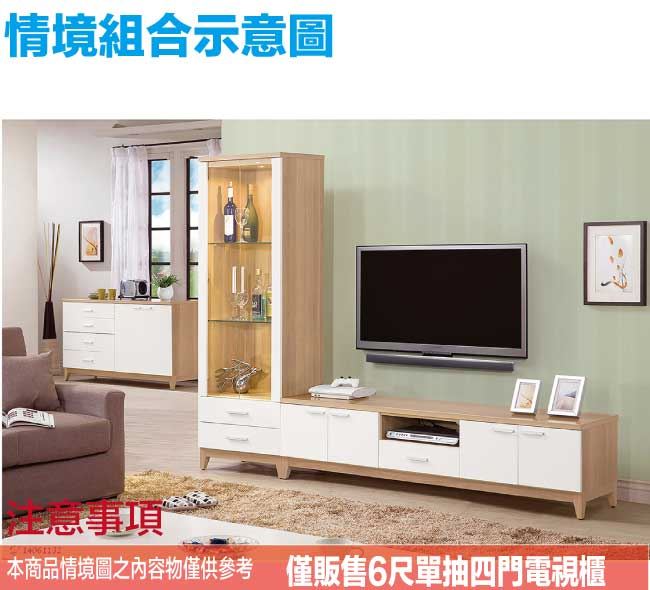 【綠家居】坦思利雙色6尺四門單抽電視櫃