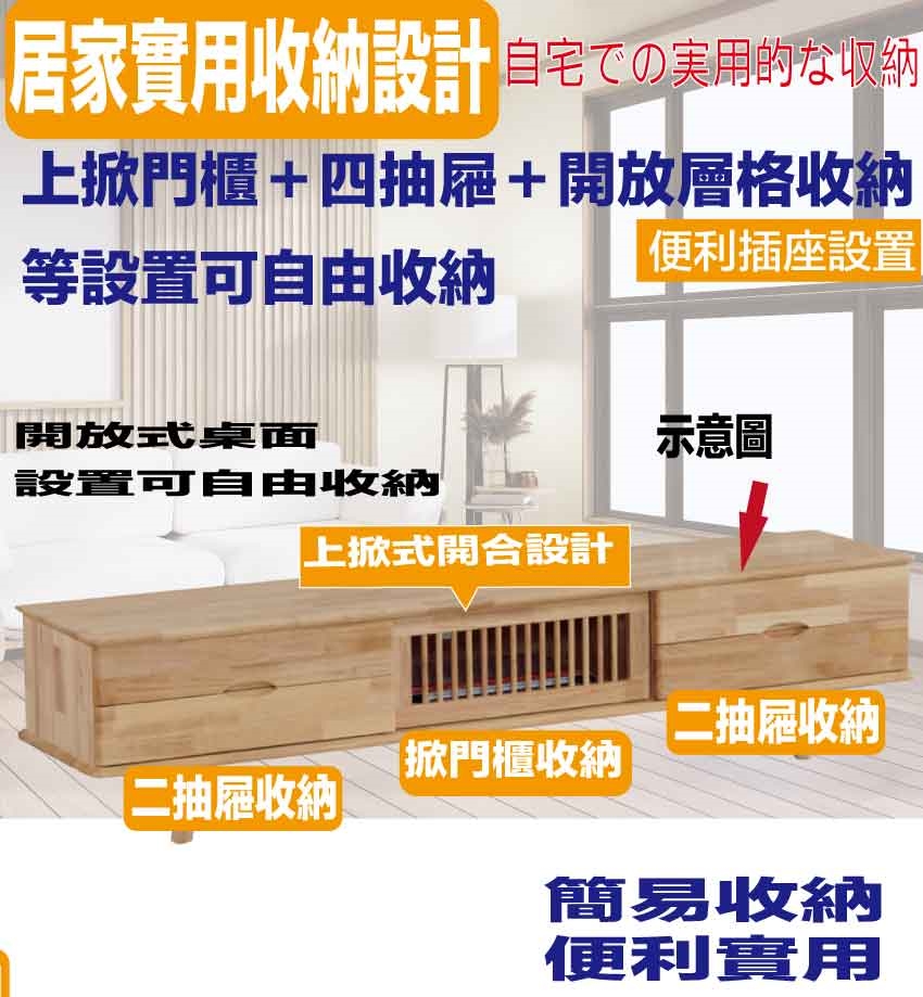 - ◆產品名稱:【綠家居】達歐實木6尺四抽掀門電視櫃