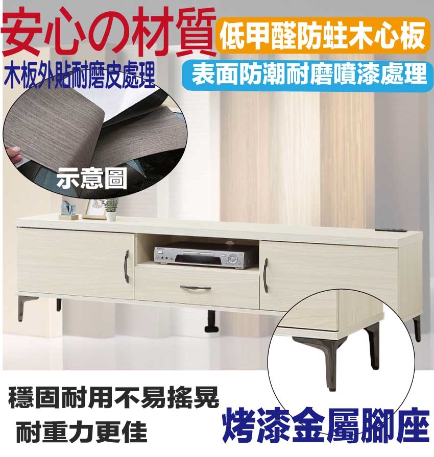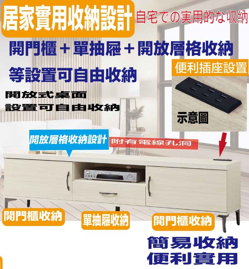 ★偏遠地區需額外加收運費,下標請先問與答詢問★ ★下訂前注意 由於商品流動較快,下訂前請先詢問是否有貨在下訂喔~★ 【綠家居】瑞秋6尺二門單抽電視櫃 淺橡木紋色系+安心材質製造,使用放心+搭配居家更便利,採用防蛀木心板+烤漆金屬腳座+五金滑軌結構+防夾手緩衝門片五金等安心材質製造 ,外層採用防潮耐磨噴漆處理搭配採用開門櫃+單抽屜+開放層格+桌面設有插座等收納空間設計,全由專人配送到家,專業安心服務,替你省下更多時間!