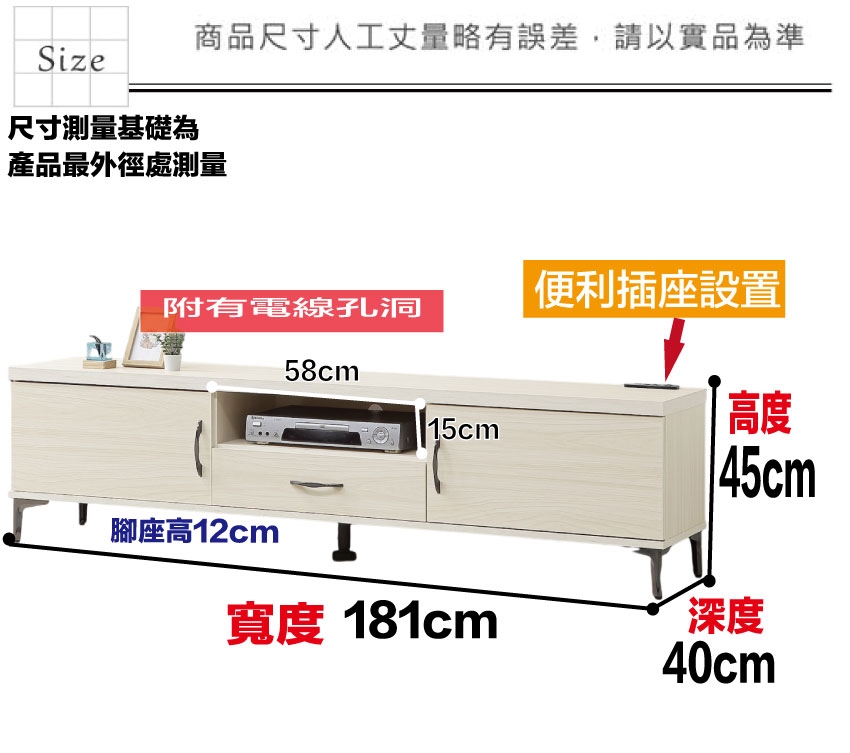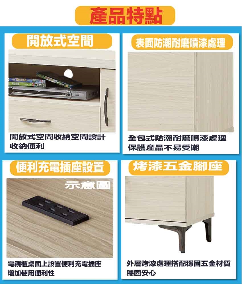 - ◆產品名稱:【綠家居】瑞秋6尺二門單抽電視櫃