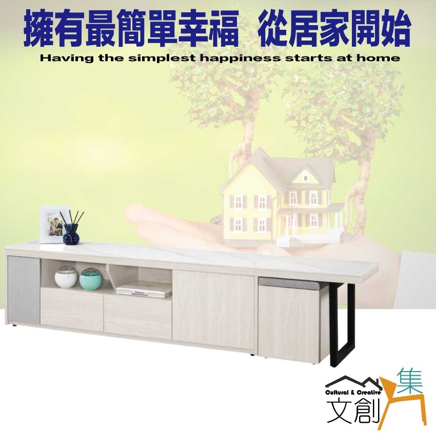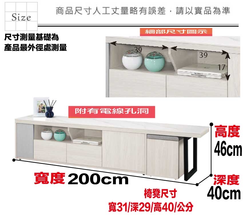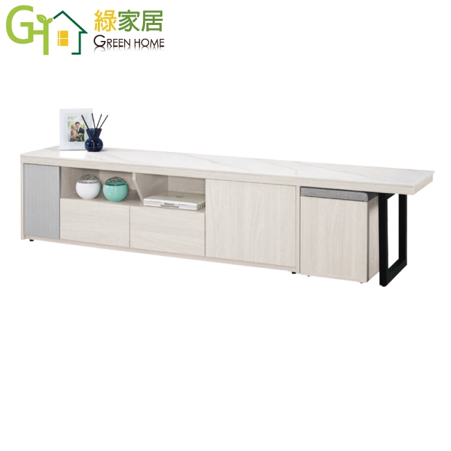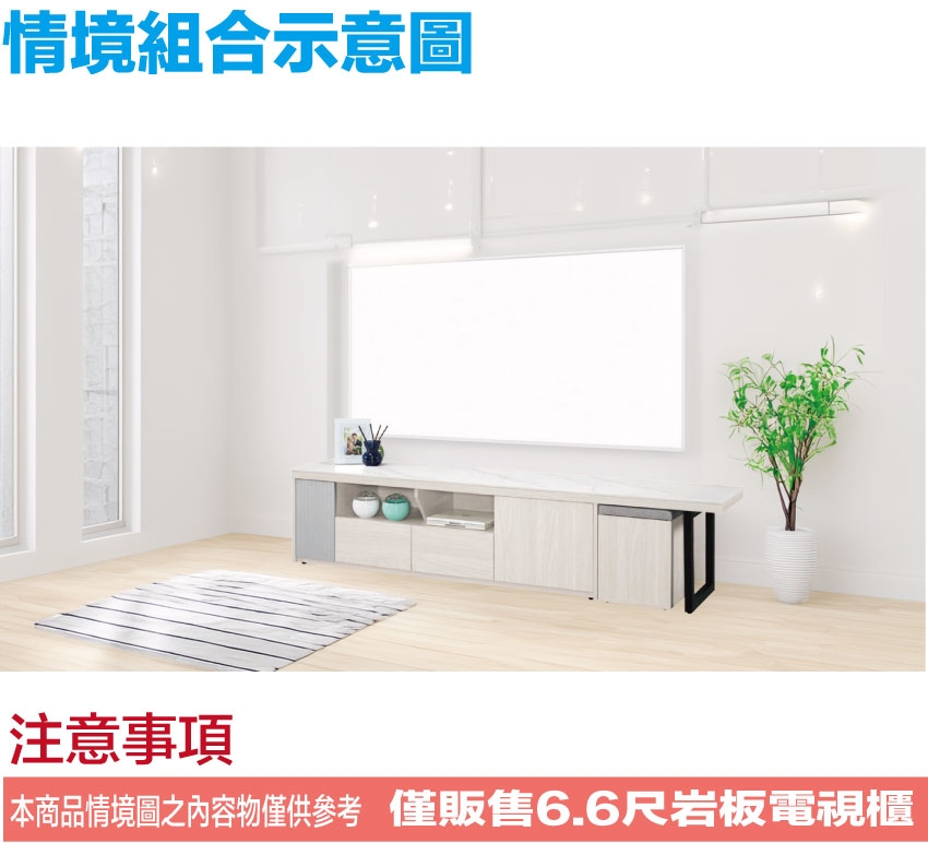 - ◆產品名稱:【綠家居】克萊雙色6.7尺岩板開門二抽電視櫃(含可收納椅凳單張)