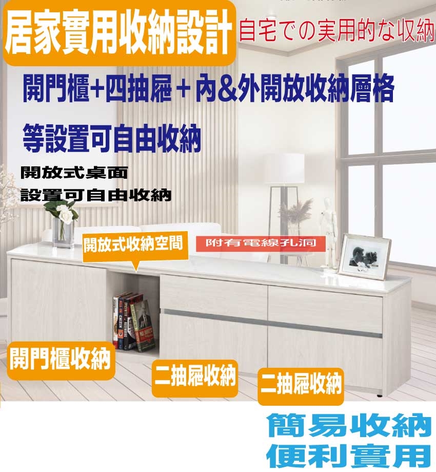 - ◆產品名稱:【綠家居】華爾雙色6尺岩板開門四抽電視櫃