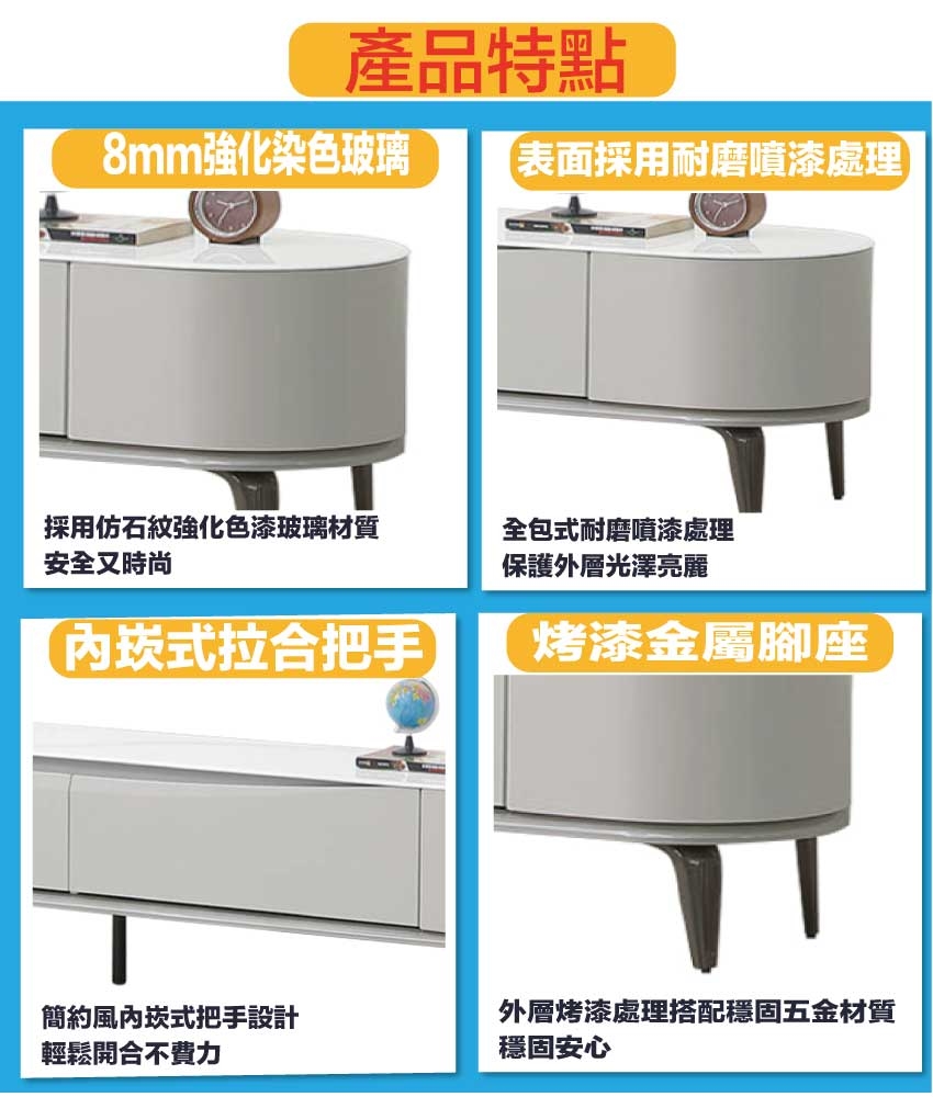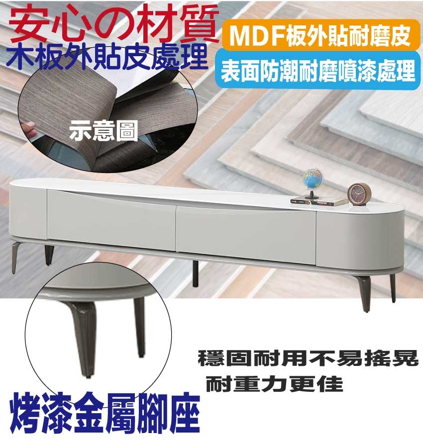 材質:防潮MDF板+烤漆五金腳座+五金滑軌結構+8mm仿大理石紋強化玻璃桌面板