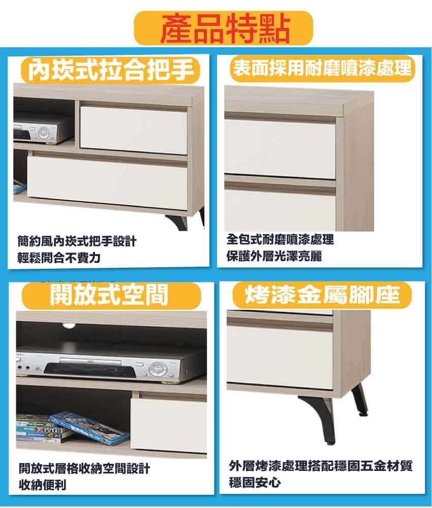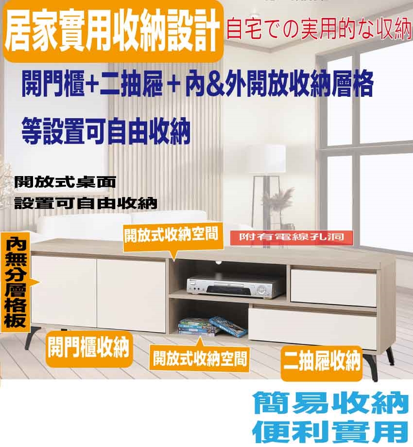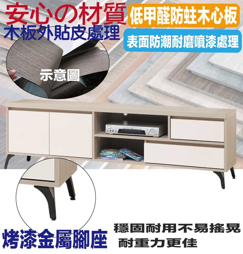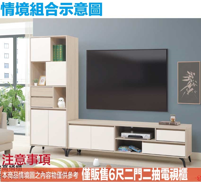 - ◆產品名稱:【綠家居】加菲利雙色6尺二門二抽電視櫃