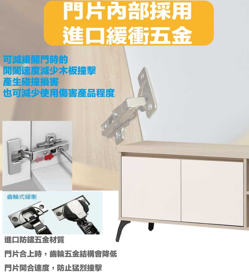 材質:防蛀木心板+五金滑軌結構+防夾手緩衝門片五金+烤漆五金腳座