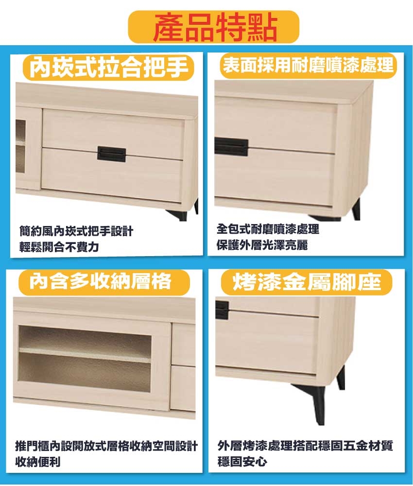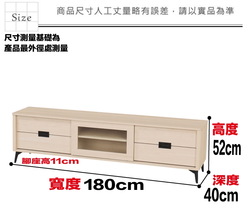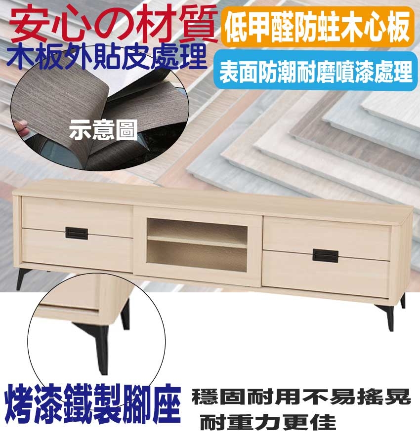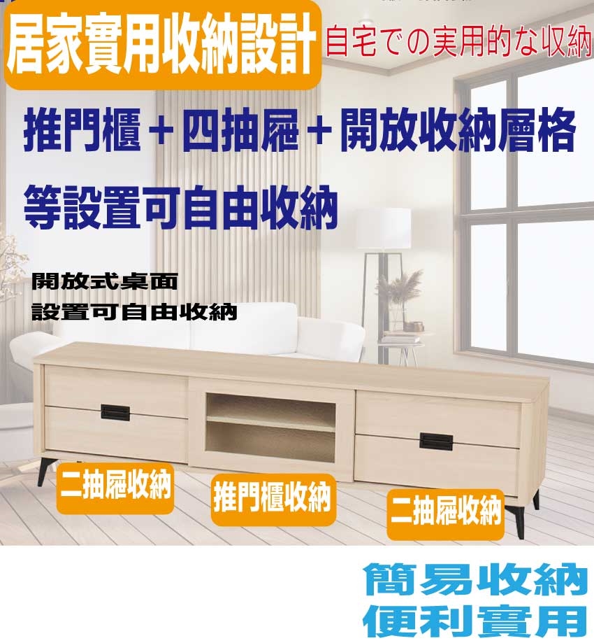 - ◆產品名稱:【綠家居】力斯6尺推門四抽電視櫃