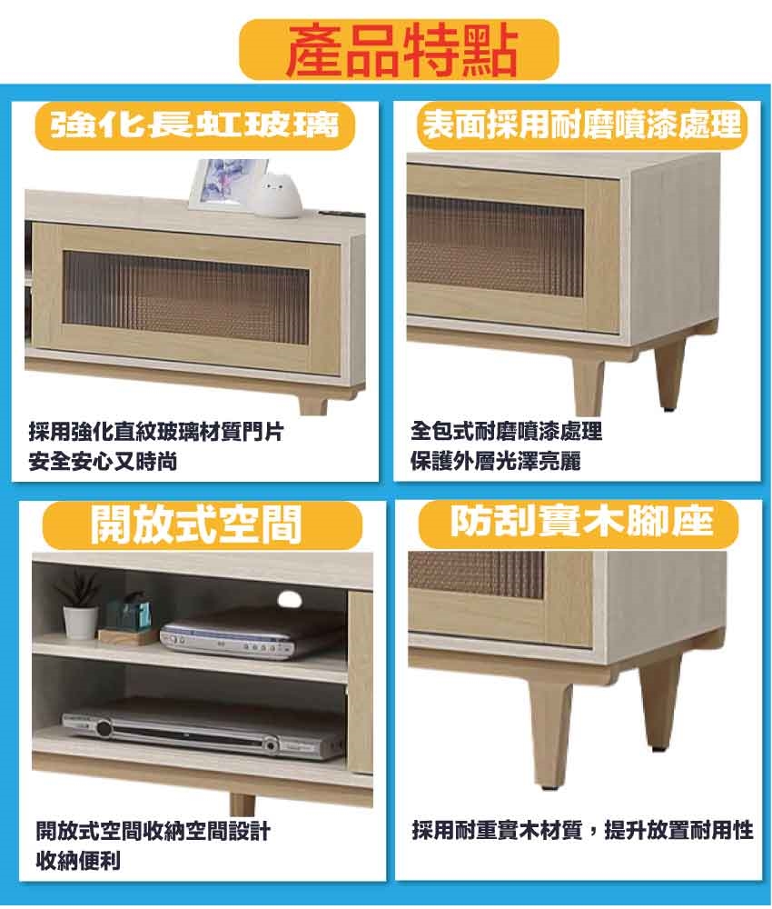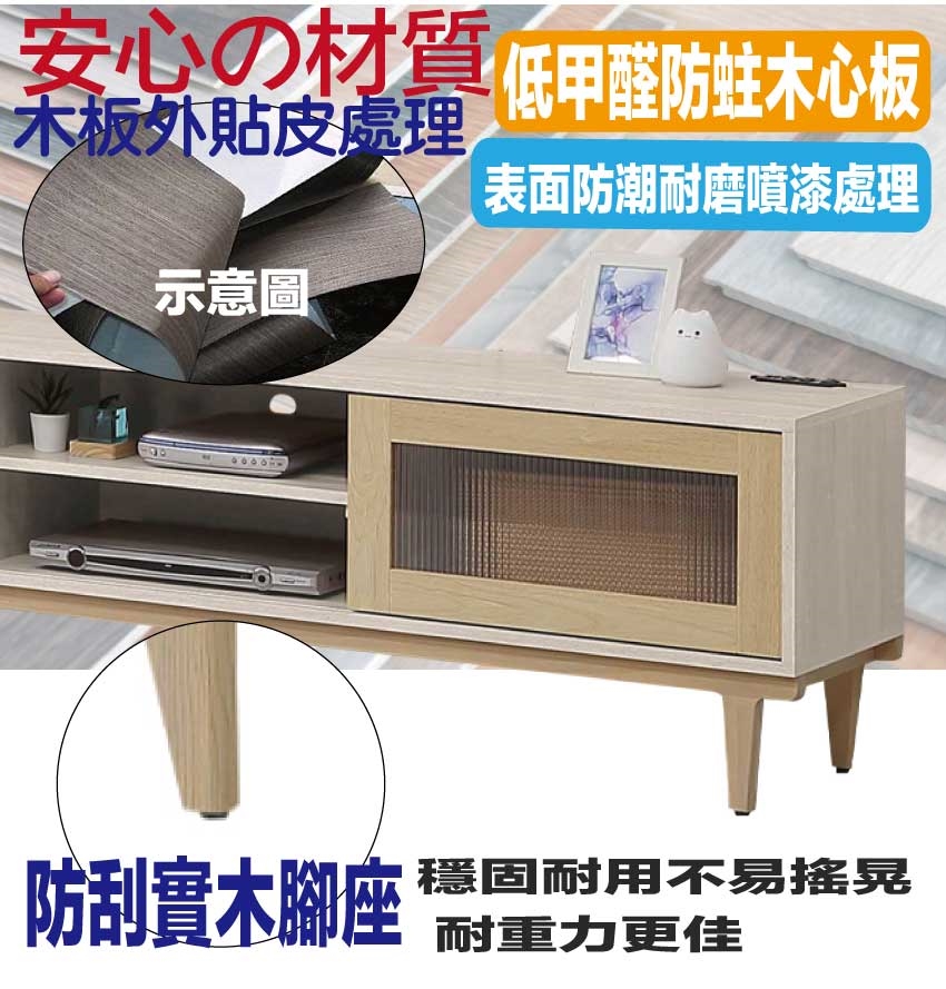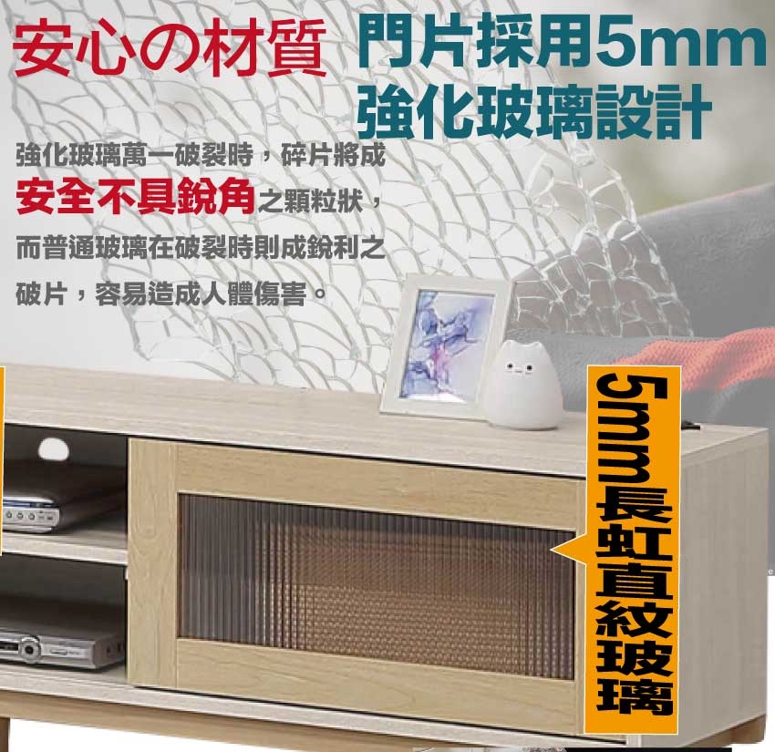 材質:防蛀木心板+防刮實木腳座+五金滑軌結構+5mm長虹直紋玻璃