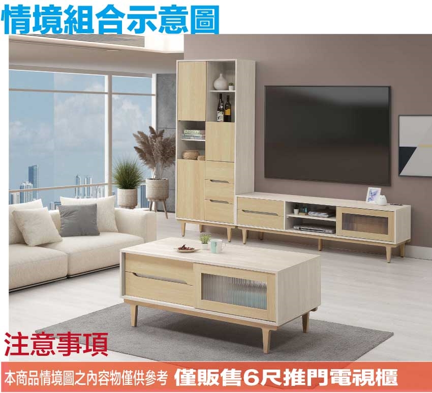 - ◆產品名稱:【綠家居】菲可雙色6尺推門二抽電視櫃(附插座單個)