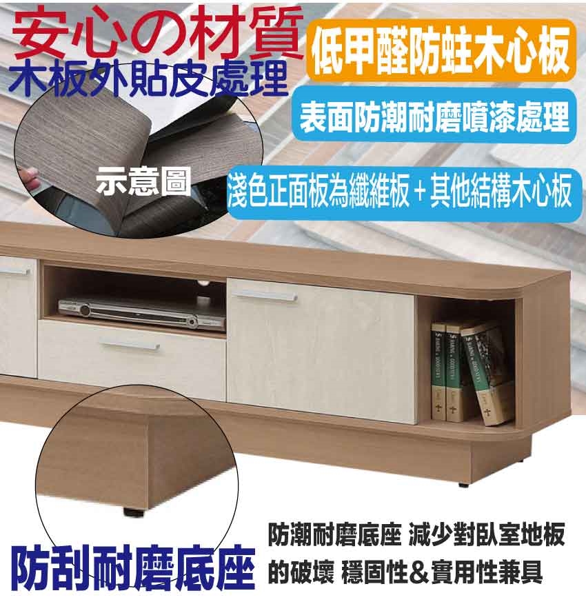 ★偏遠地區需額外加收運費,下標請先問與答詢問★ ★下訂前注意 由於商品流動較快,下訂前請先詢問是否有貨在下訂喔~★ 【綠家居】賓利雙色6尺二門單抽電視櫃 現代雙色系+安心材質製造,使用放心+搭配居家更便利,採用防蛀木心板+防潮耐磨底座+防潮MDF板+五金滑軌結構+防夾手緩衝門片五金等安心材質製造 ,外層採用防潮耐磨噴漆處理搭配採用開門櫃+單抽屜+開放層格等收納空間設計,全由專人配送到家,專業安心服務,替你省下更多時間!