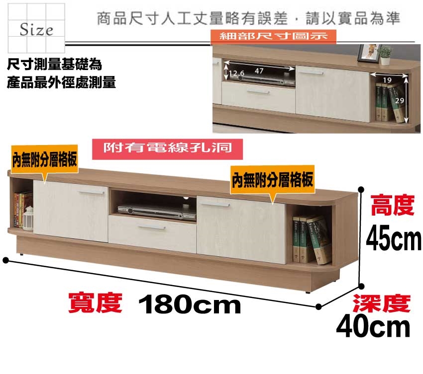 - ◆產品名稱:【綠家居】賓利雙色6尺二門單抽電視櫃