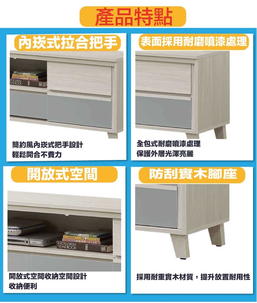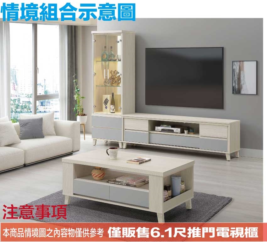 - ◆產品名稱:【綠家居】奇伊雙色6.1尺推門二抽電視櫃