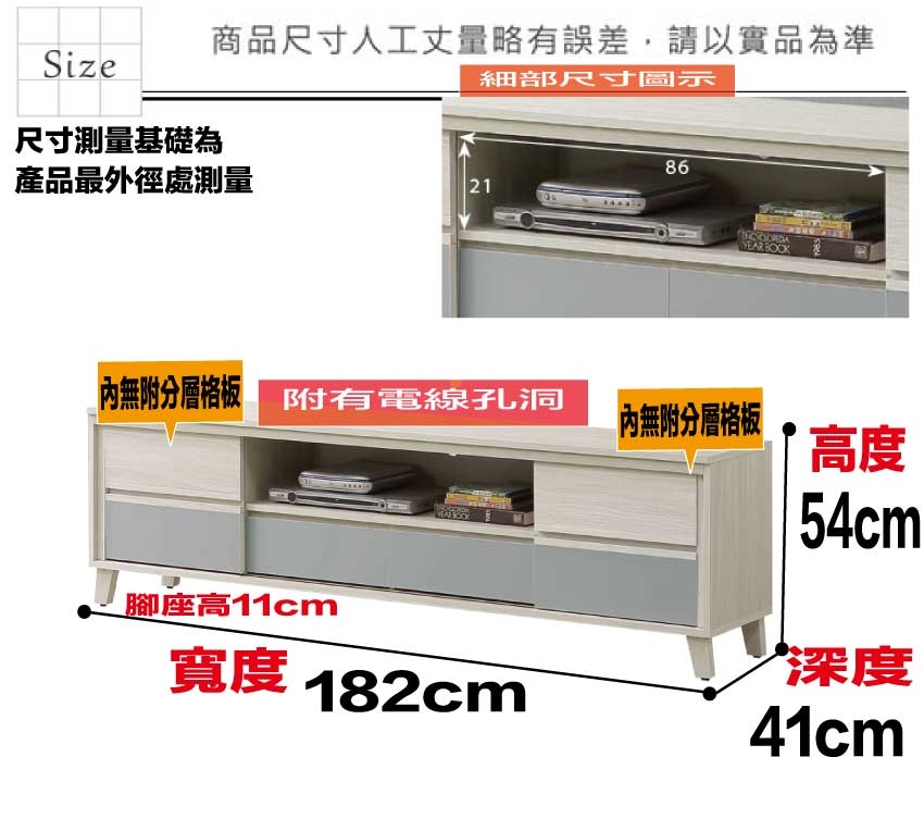 尺寸:(寬)182x(深)41x(高)54/公分
