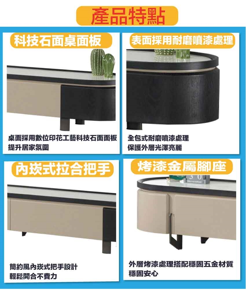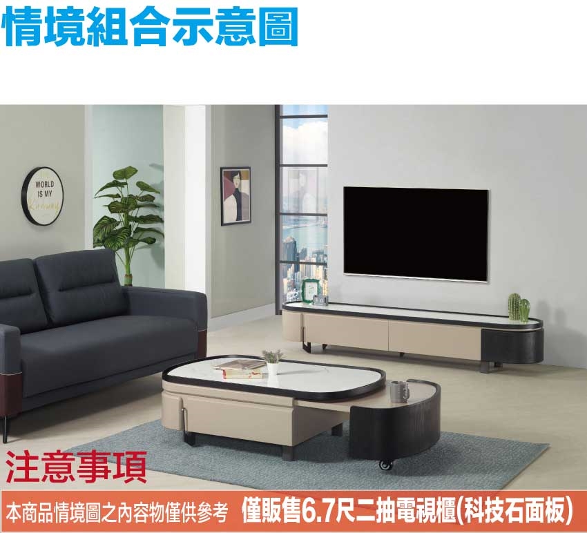 - ◆產品名稱:【綠家居】晴天雙色6.7尺科技石面電視櫃