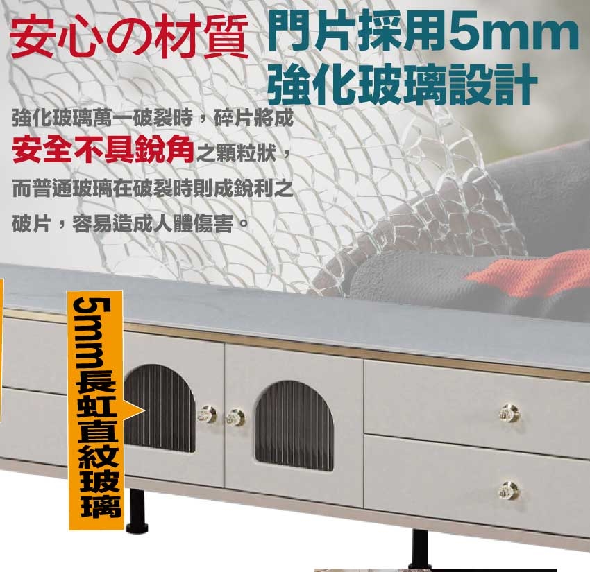 ◆材質: 防潮MDF板+實木噴漆腳座&金屬腳套+五金滑軌結構+8mm高硬度岩板桌面板+長虹玻璃門片