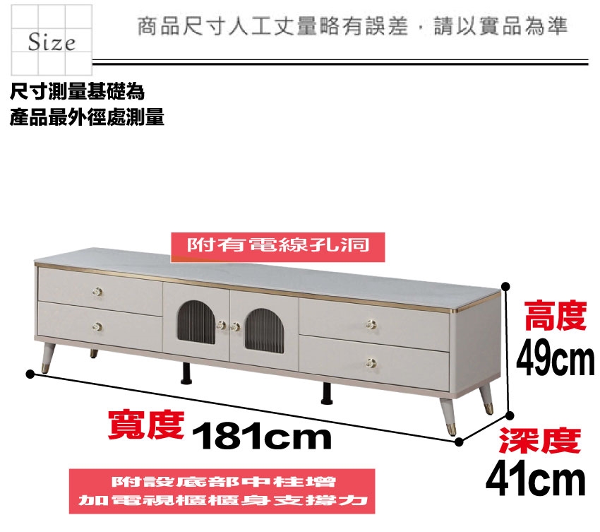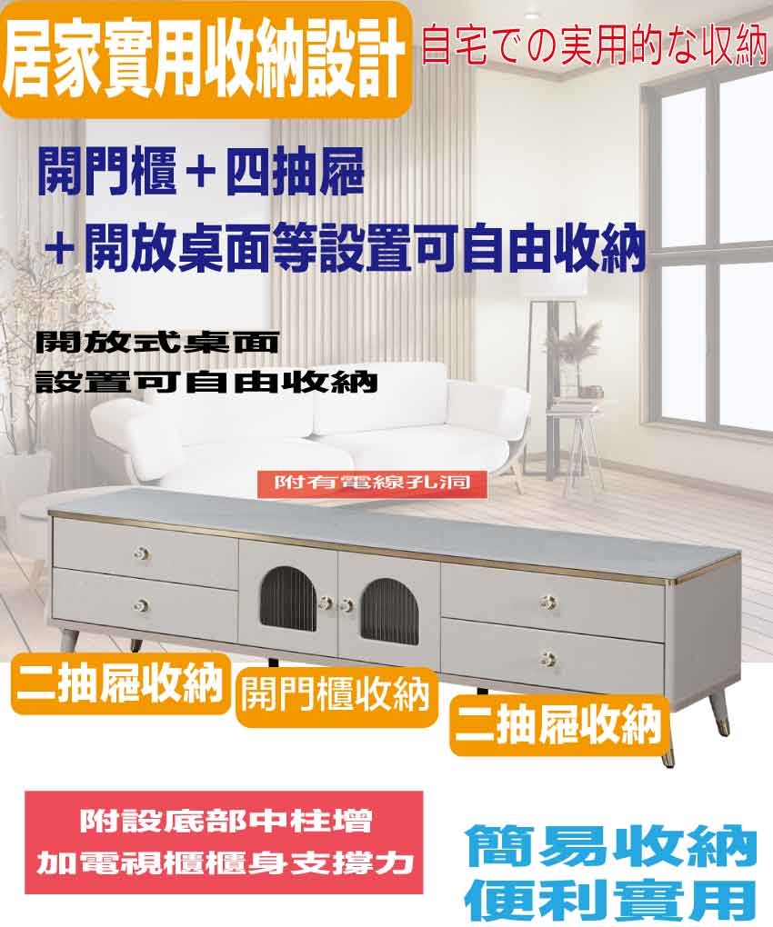 - ◆產品名稱:【綠家居】庫倫6尺岩板開門四抽電視櫃