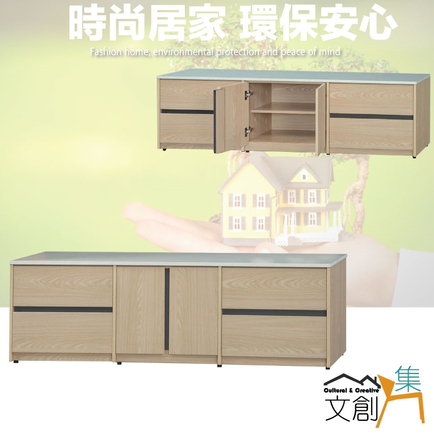 ★偏遠地區需額外加收運費,下標請先問與答詢問★ ★下訂前注意 由於商品流動較快,下訂前請先詢問是否有貨在下訂喔~★ 【綠家居】伊斯6尺四抽開門電視櫃 淺橡雙色系+安心材質製造,使用放心+搭配居家更便利,採用防蛀木心板+防潮耐磨底座+防夾手緩衝五金+美耐皿仿雲紋石面桌面板(非石面)+五金滑軌結構等安心材質製造 ,外層採用防潮耐磨噴漆處理搭配採用開門櫃+四抽屜+內開放式層格等收納空間設計,全由專人配送到家,專業安心服務,替你省下更多時間!
