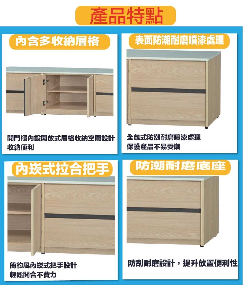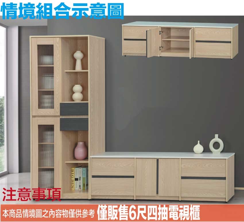 - ◆產品名稱:【綠家居】伊斯6尺四抽開門電視櫃