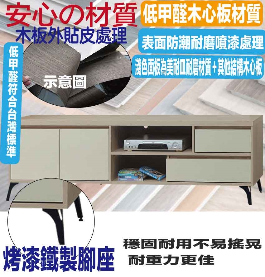 ★偏遠地區需額外加收運費,下標請先問與答詢問★ ★下訂前注意 由於商品流動較快,下訂前請先詢問是否有貨在下訂喔~★ 【綠家居】蕾克6尺二門二抽電視櫃 木紋雙色系+現代簡約風格+安心材質製造,使用放心+搭配居家更便利,整體採用防蛀木心板+烤漆金屬腳座+防夾手緩衝門片五金等安心材質製造搭配外層採用防潮耐磨噴漆處理 ,採用開門櫃+二抽屜+內&外開放層格等收納空間設計,全由專人配送到家,專業安心服務,替你省下更多時間!