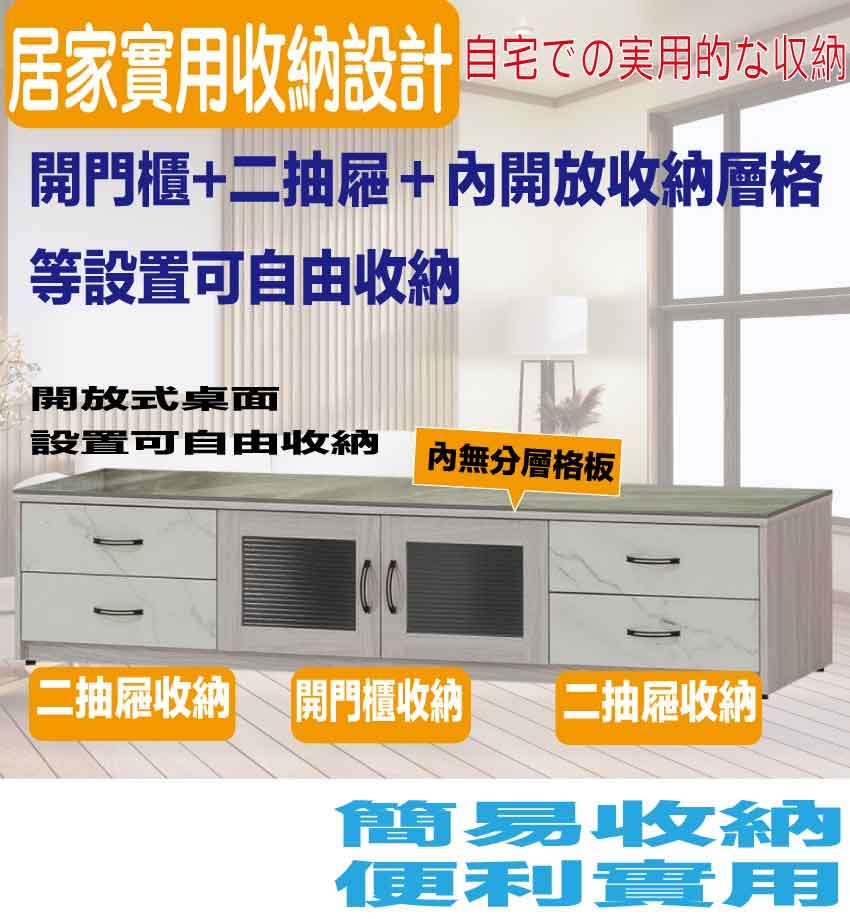 - ◆產品名稱:【綠家居】皮登6尺開門四抽岩板電視櫃(仿大理石紋路耐磨美耐皿面板)