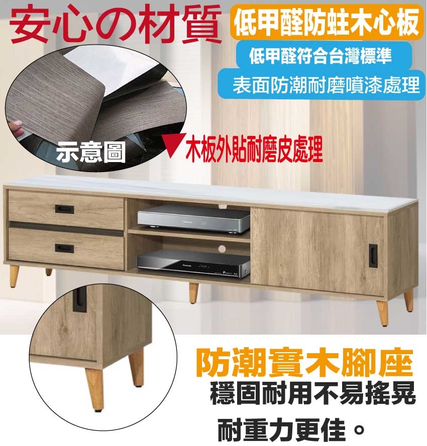 ★偏遠地區需額外加收運費,下標請先問與答詢問★ ★下訂前注意 由於商品流動較快,下訂前請先詢問是否有貨在下訂喔~★ 【綠家居】瑞可6尺岩板推門二抽電視櫃 橡木紋色系+現代簡約風格+安心材質製造,使用放心+搭配居家更便利,整體採用防蛀木心板+實木造型腳座+12mm高硬度岩板桌面板等安心材質製造搭配外層採用防潮耐磨噴漆處理 ,採用推門櫃+二抽屜+內&外開放層格等收納空間設計,全由專人配送到家,專業安心服務,替你省下更多時間!
