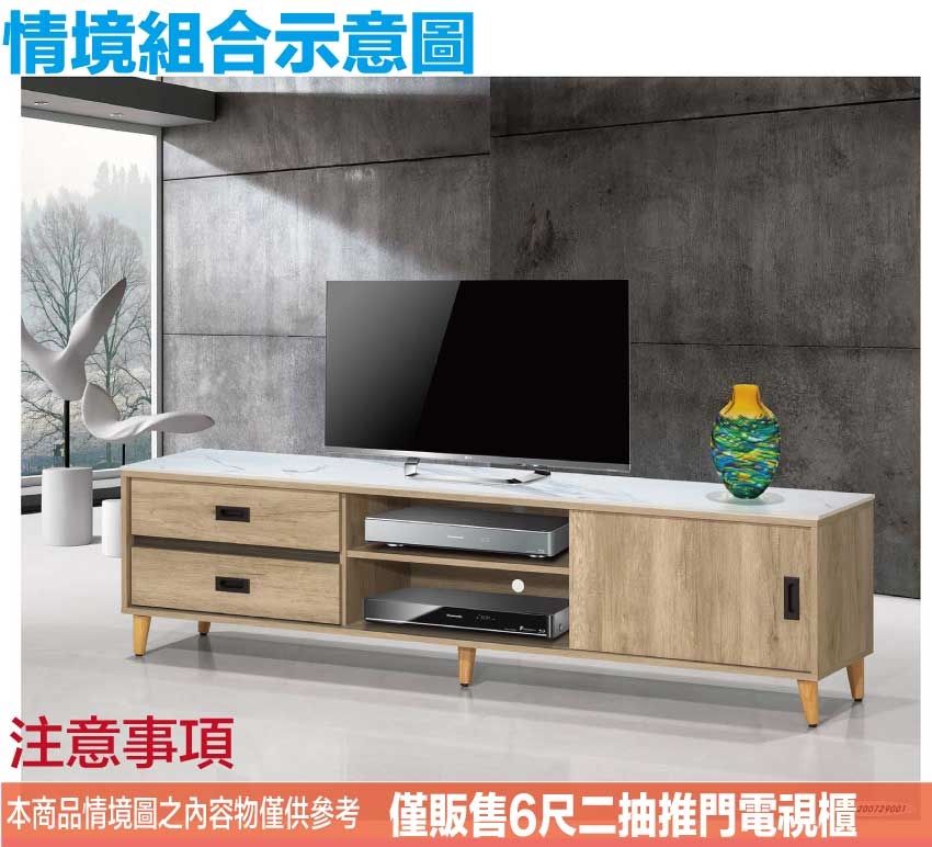 - 產品名稱:【綠家居】瑞可6尺岩板推門二抽電視櫃