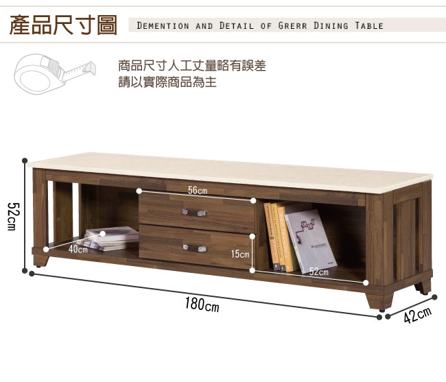 電視櫃:(寬)180x (深)42 x (高)52公分