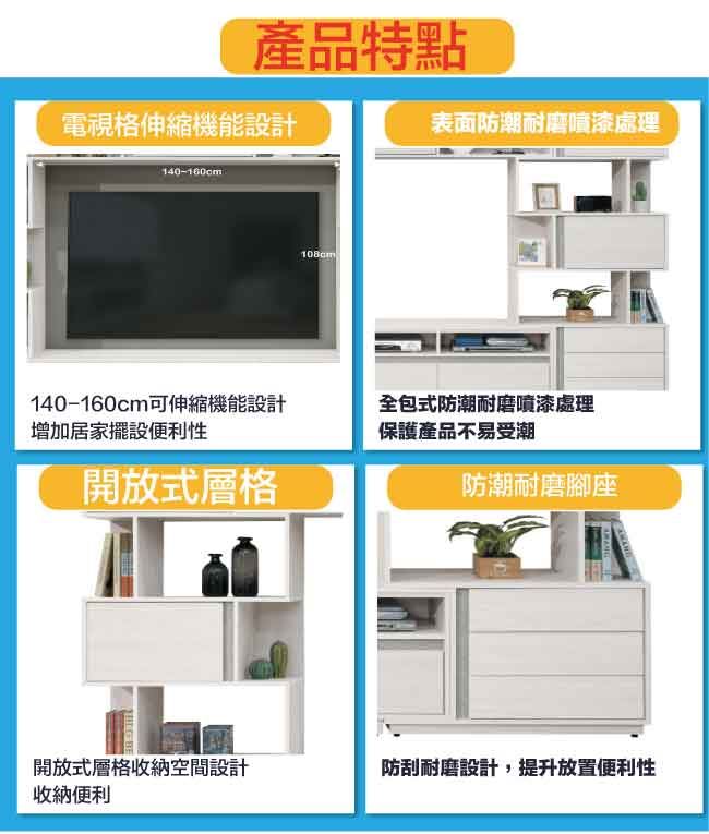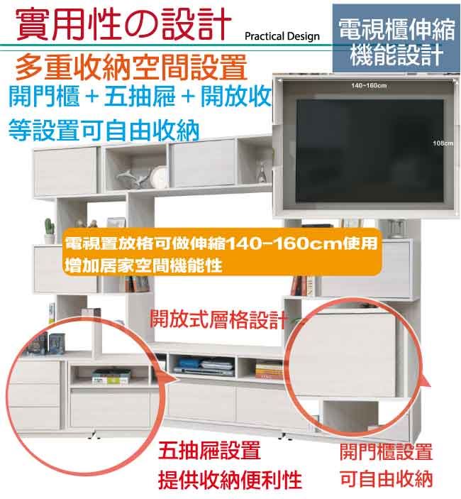 【綠家居】斯塔林10尺伸縮多功能電視牆櫃/視聽櫃組合