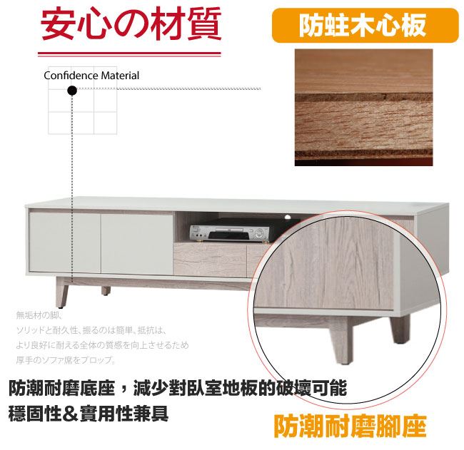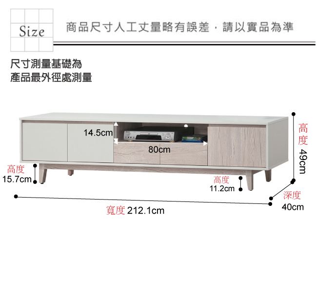 材質 | ◆產品名稱:【綠家居】卡地7.1尺三門二抽電視櫃/視聽櫃 尺寸:(寬)212.1x(深)40(高)49公分 ◆材質: 材質:防蛀木心板+防潮耐磨腳座+五金滑軌結構+防夾手緩衝門片五金 噴漆:防潮耐磨噴漆處理