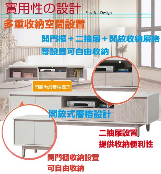 【綠家居】卡地7.1尺三門二抽電視櫃/視聽櫃