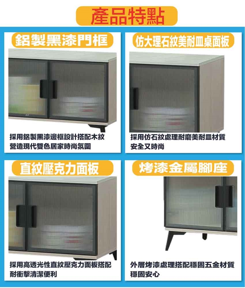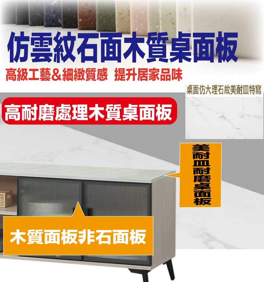 材質:防蛀木心板+防夾手緩衝五金+烤漆五金腳座+鋁製邊框+長虹PC壓克力面板+仿大理石紋耐磨美耐皿材質桌面板