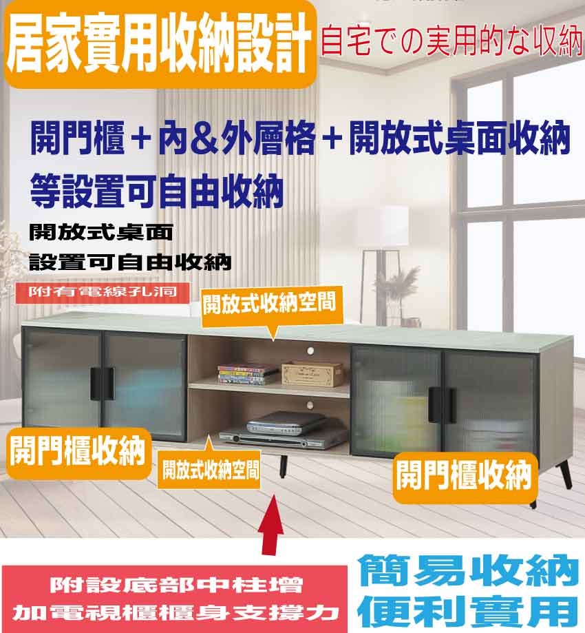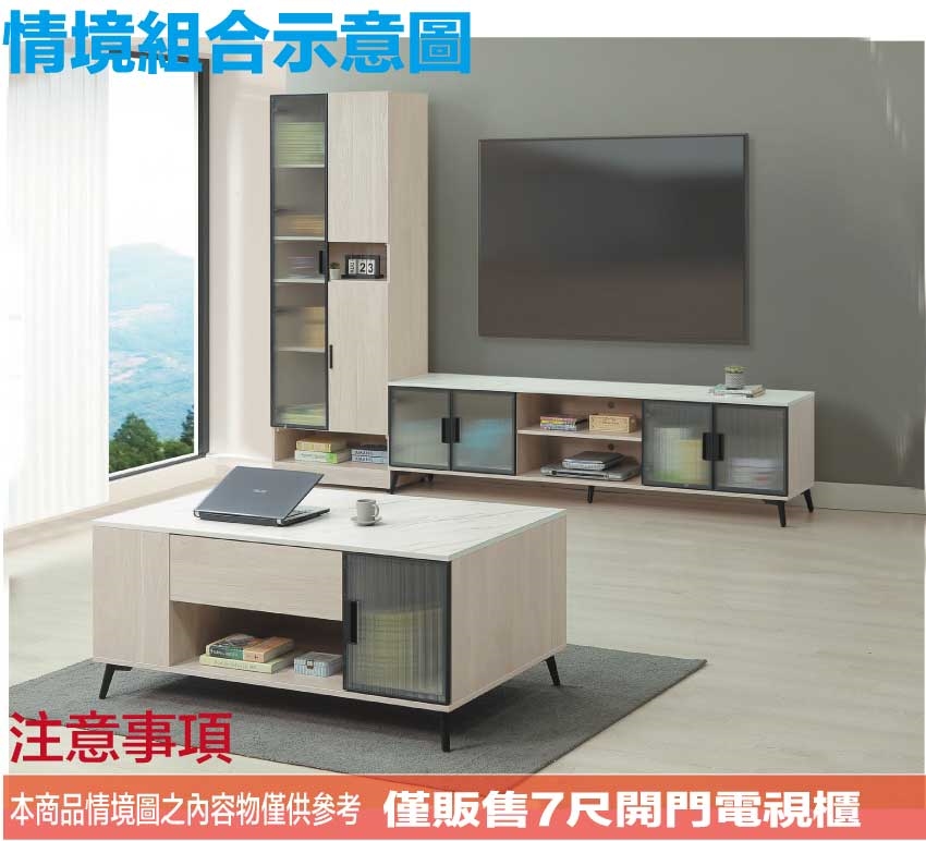 - ◆產品名稱:【綠家居】夏斯7尺仿石紋四門電視櫃