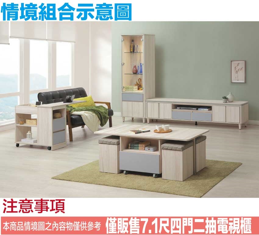 - ◆產品名稱:【綠家居】莫凡雙色7.1尺四門二抽電視櫃