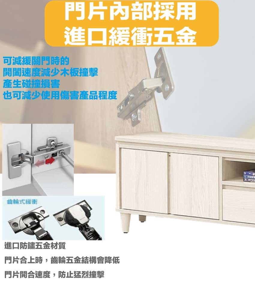 材質:防蛀木心板+防刮實木腳座+五金滑軌結構+防夾手緩衝門片五金