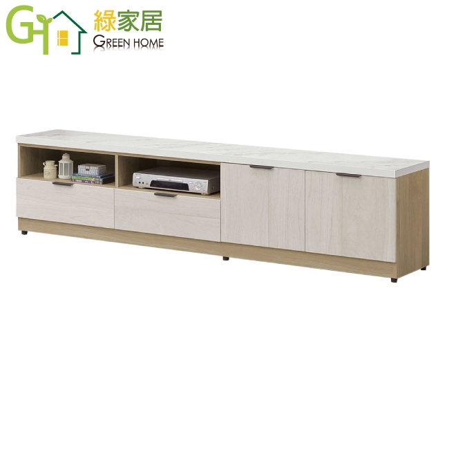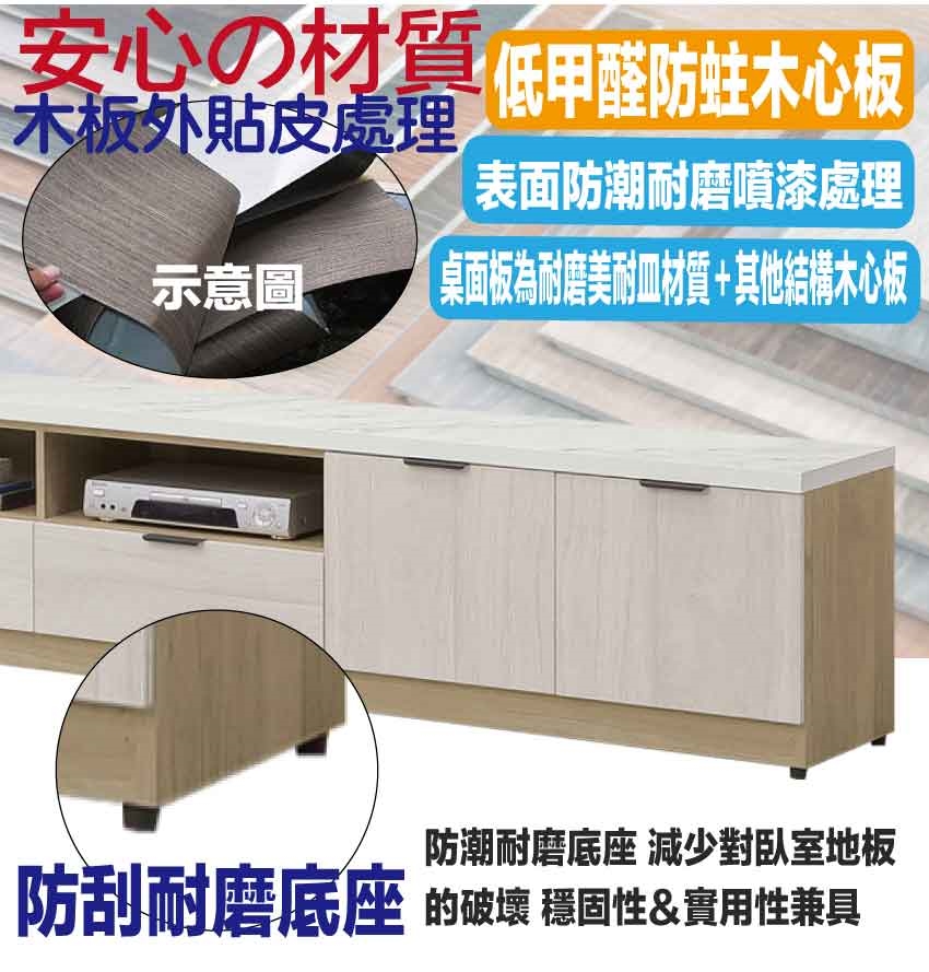★偏遠地區需額外加收運費,下標請先問與答詢問★ ★下訂前注意 由於商品流動較快,下訂前請先詢問是否有貨在下訂喔~★ 【綠家居】蘿克7尺二門二抽電視櫃 現代雙色系+安心材質製造,使用放心+搭配居家更便利,採用防蛀木心板+防潮耐磨底座+五金滑軌結構+防夾手緩衝門片五金+仿大理石紋美耐皿桌面板等安心材質製造 ,外層採用防潮耐磨噴漆處理搭配採用開門櫃+二抽屜+開放層格等收納空間設計,全由專人配送到家,專業安心服務,替你省下更多時間!