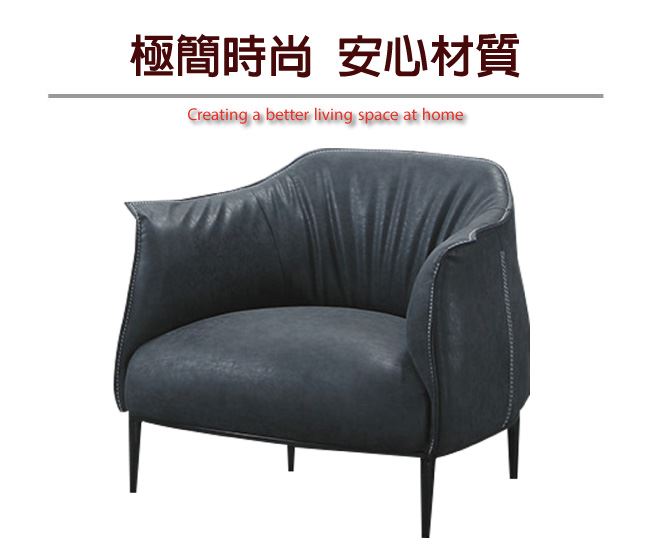 【綠家居】提菲芮 工業風深灰仿舊皮革單人座沙發椅