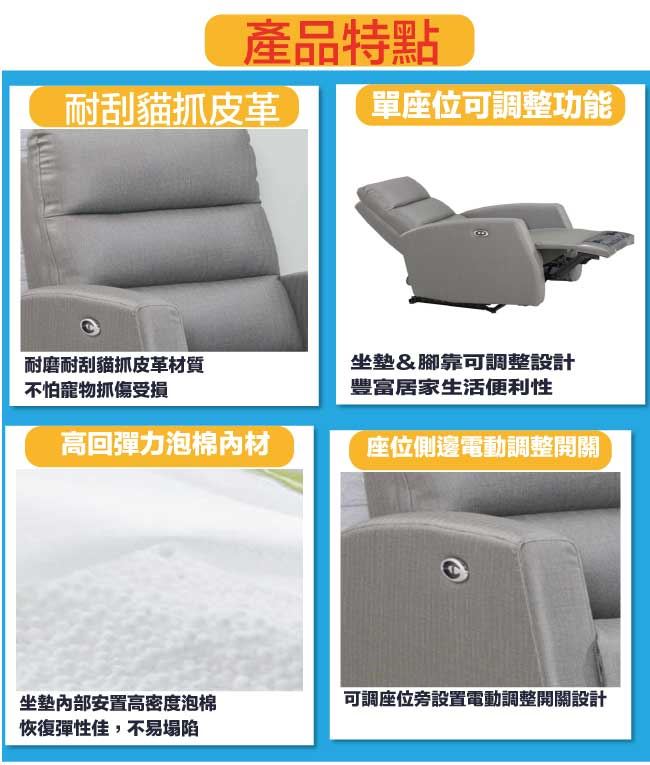 【綠家居】米姆貓抓皮革機能性單人座沙發(電動開關調整)