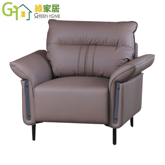 【綠家居】波卡咖啡柔韌皮革單人座沙發椅