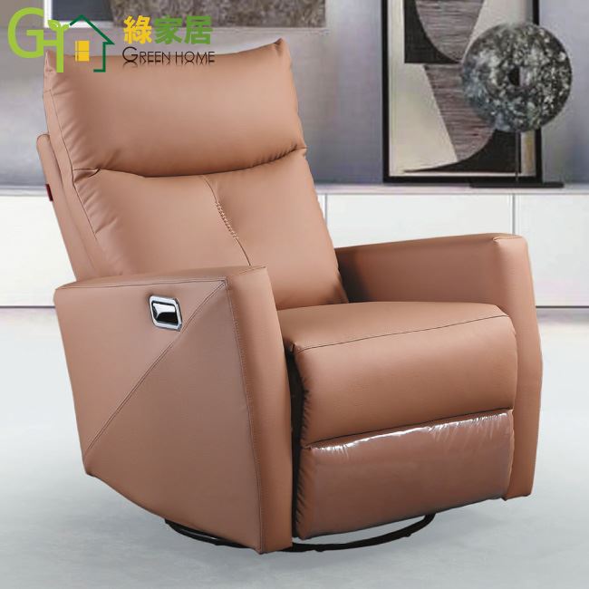 【綠家居】卡特透氣皮革機能可旋轉單人座沙發椅(手動按鈕可調傾仰機能設計)