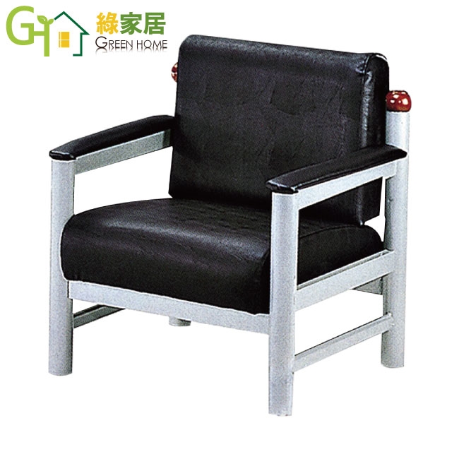 【綠家居】蘿法黑透氣皮革單人座沙發椅