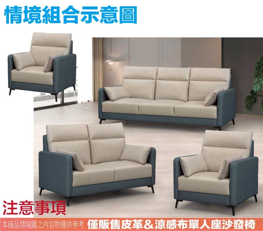 - ◆產品名稱:【綠家居】夏蘿皮革&涼感布雙面墊單人座沙發椅