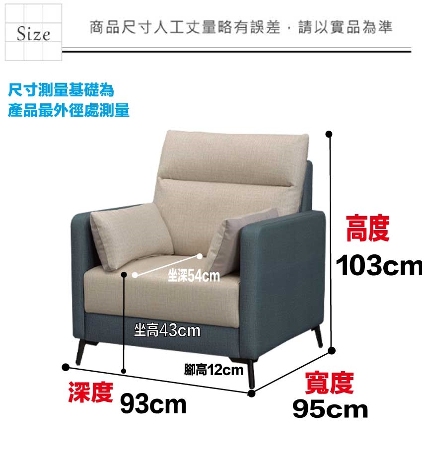 1人沙發椅尺寸:(寬)93x(深)95x(高)103/公分