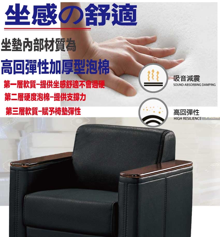 採用內部實木板材底框+防潮黑漆腳座+透氣柔韌皮革+高回彈泡棉等安心材質製造