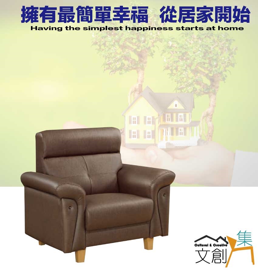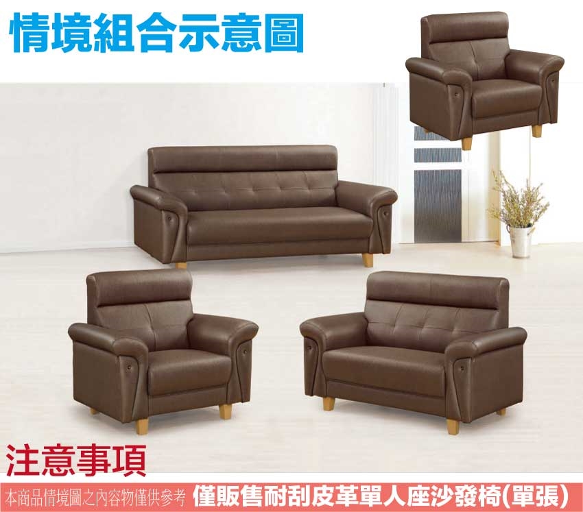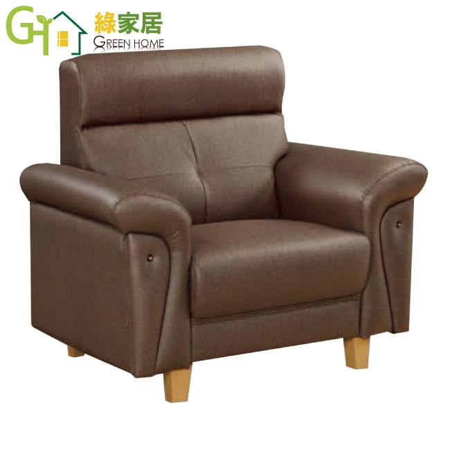 【綠家居】雅可咖啡色耐磨皮革單人座沙發椅