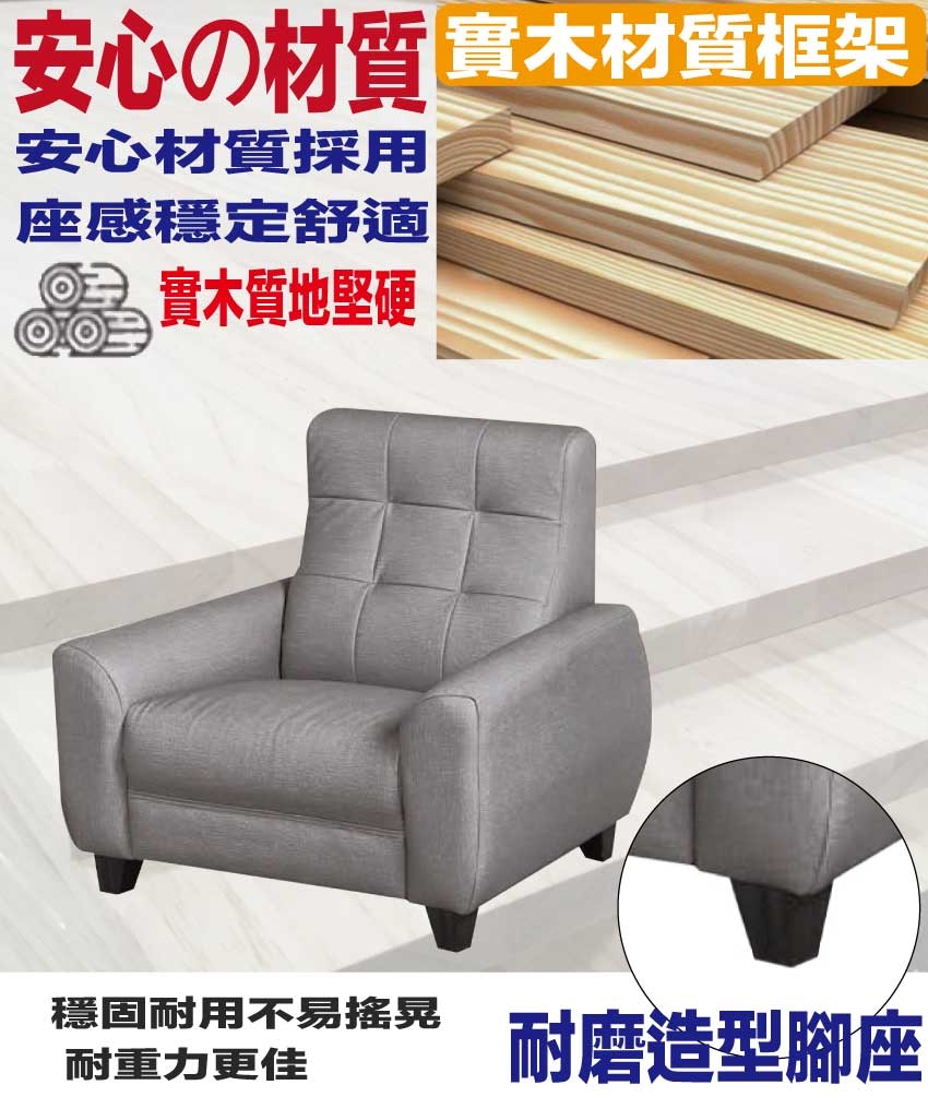 採用內部實木框架+耐磨造型腳座+耐磨耐刮皮革+高回彈泡棉+獨立筒彈簧座包等安心材質製造