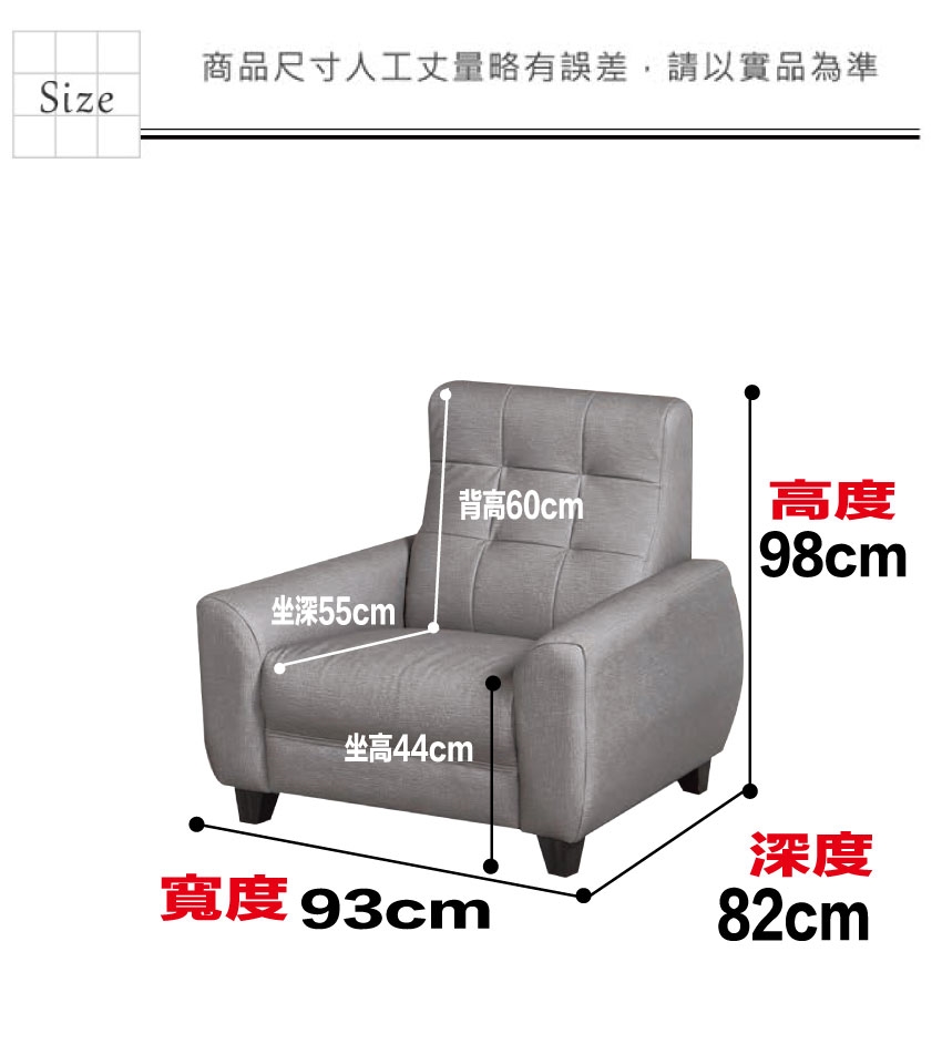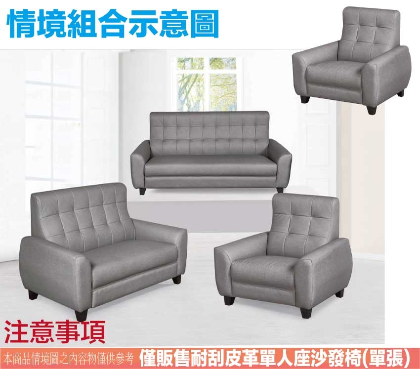 產品名稱:【綠家居】凱默灰耐磨皮革獨立筒單人座沙發椅 - 1人沙發椅尺寸:(寬)93x(深)82x(高)98/公分